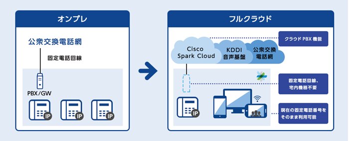 KDDIとシスコシステムズ合同会社は協業し、音声環境をフルクラウドで利用できるサービス「Cisco Spark with KDDI」のコーリング機能を提供予定です。このサービスの提供により、今まで課題となっていた電話回線や宅内通信機器の管理も不要となり、クラウド化による恩恵を余すことなく受けることが可能となります。