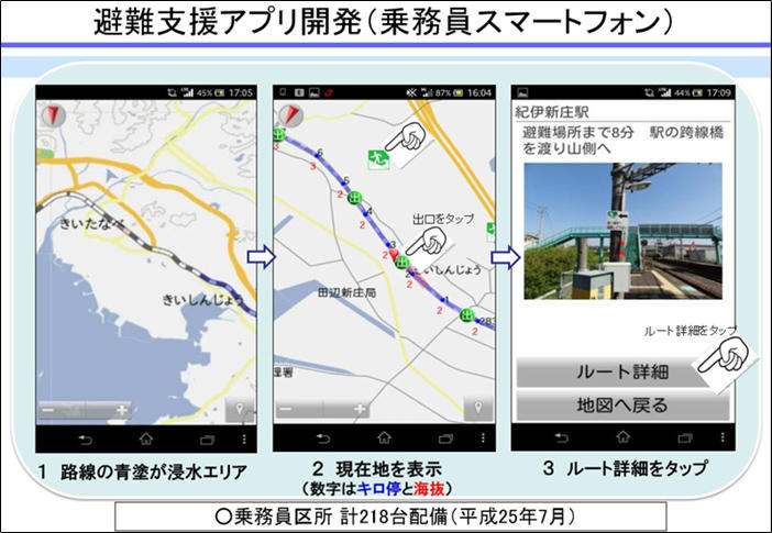 もちろん高齢者のように電車からの飛び降りが難しい乗客が使える降車台や、簡易ハシゴも駅間の線路に多数整備した。さらに乗務員は現在地点から避難場所までの最短ルートが分かるアプリを入れたタブレットも携帯している。