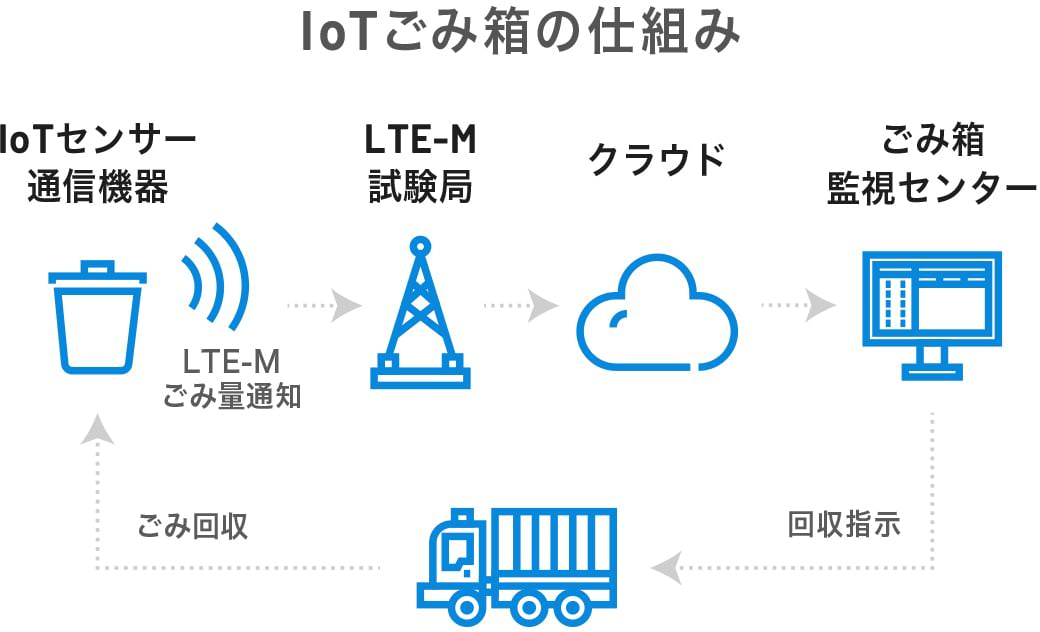 IoT向け通信規格LTE-M (Cat.M1) を活用し開発したIoTごみ箱を用いた実証実験。