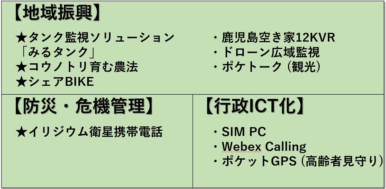 今回のイベントでは、その中からいくつかの事例をピックアップし、関連する技術やソリューションを紹介。「地域振興」「防災・危機管理」「行政ICT化」と大きく3つの分野に分けて右表の展示を行った。本記事では、特に来場者の注目を集めた4つの事例(右表の★部分)を紹介する。