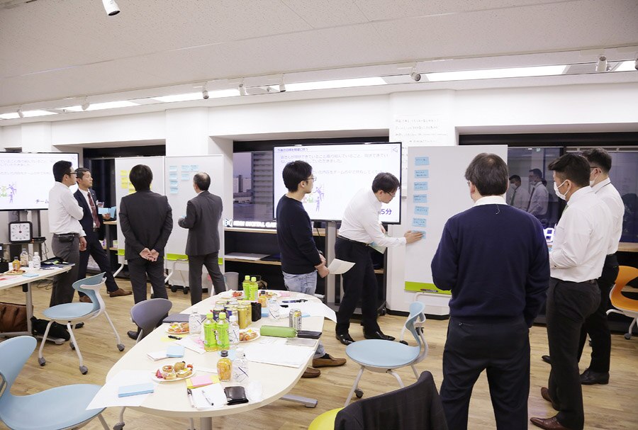 前半の講演内容を踏まえ、後半はDIGITAL GATEで実際に行われているワークショップをベースとした特別体験プログラムを実施した。プログラムのゴールは、参加者一人ひとりが「アジャイル型組織の運営が成功している状態」「アジャイル型組織が実現した先にある、自社が成功した未来」を具体的にイメージすること。大手メーカーや不動産会社を中心に、スタートアップを含め幅広い企業が参加した。