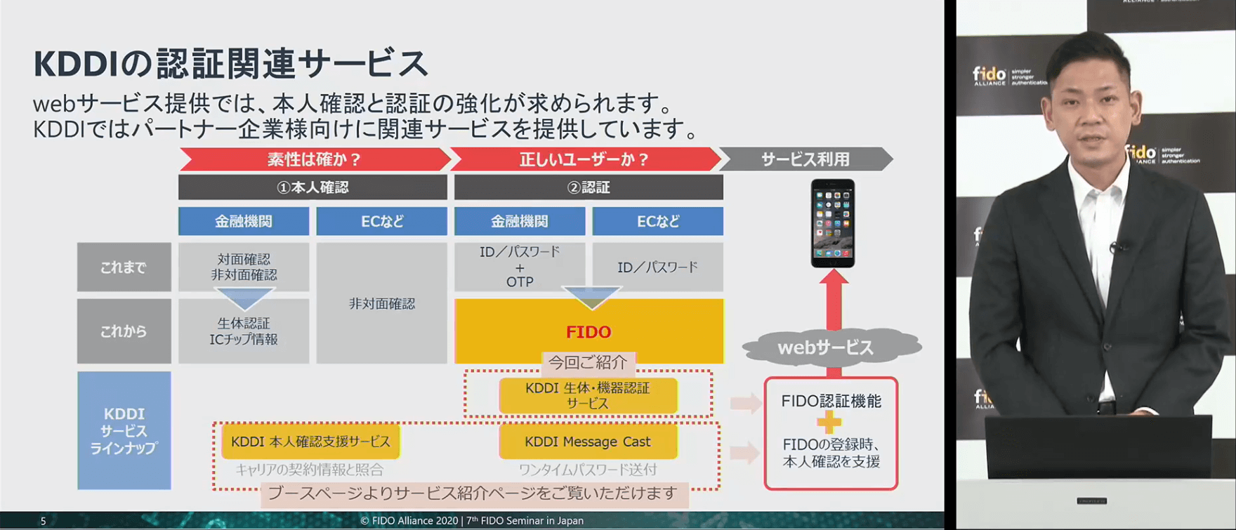 今回はその中から、KDDIのFIDOに対する取り組み状況や、提供しているFIDO関連サービスの詳細などを中心にセッションの内容を解説します。