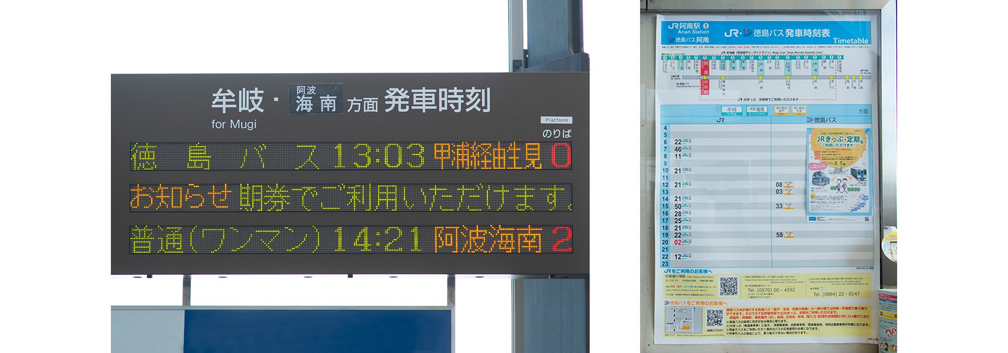 今回の「スマホタッチ支払い」の特長の1つが、共同経営の「通し運賃」にも対応している点だ。徳島バスとJR四国は、2022年4月から徳島県南部で共同経営の取り組みを開始している。共同経営では、高速バス途中乗降と鉄道の運賃面での連携を図り、JR切符や定期券といったJR乗車券類で高速バスの途中乗降を可能にしている (注2) 。運行本数が少ない路線において、バスと鉄道が互いを補完しあうことで、事実上ダイヤが増えることになるため利用者メリットにつながる。