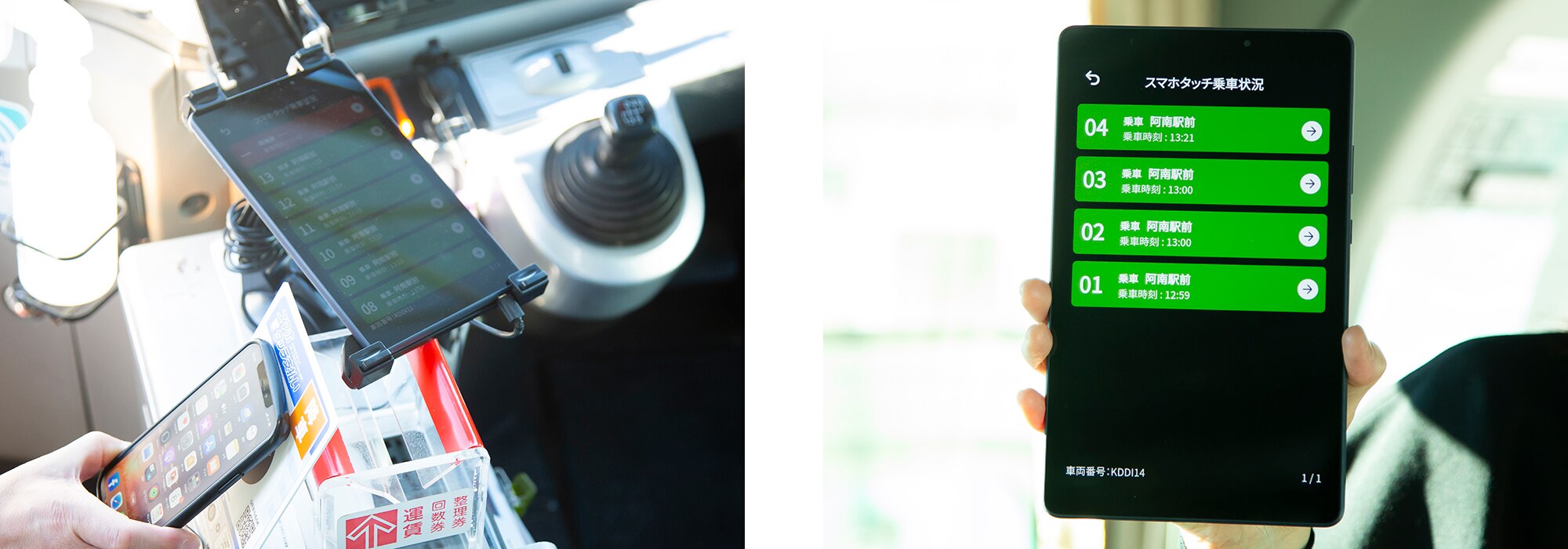 また、乗務員の利便性向上については、「乗客がスマホタッチを使ったかどうかが分かりづらい」という要望に応えるべく取り組んだ。乗客がバスから降車するたびにスマホの画面を提示してもらい、正しい区間で決済できたかどうかを確認するのは、今まで以上に乗務員の負担を強いることになるからだ。この問題を解決するために開発したのが、乗務員端末 (タブレット) を利用した通知システムだ。