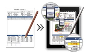 By making the electronic forms of iPads as they are and the paper and Excel forms that we are used to daily, we will realize digitalization and paperless operation while utilizing the current know-how in handwritten paper forms. The 29 types of input assistance/error reduction function greatly increases the quality and speed of work.