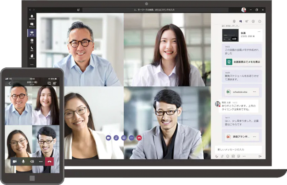 移動中やリモートワークでも、ビデオ通話・音声通話機能を使えば、