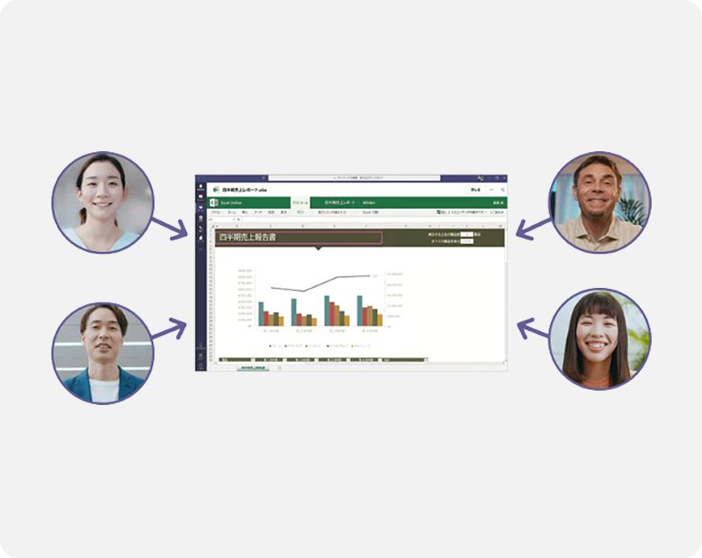 Excel、Word、PowerPoint、OneNoteのOfficeファイルを、複数人で共同編集することができます。