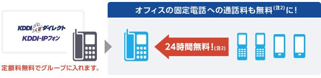 | 通話料 | 社員間 | 登録した同一グループ (注5) のau携帯電話間の通話・SMS (Cメール) | 無料 (注7,8) | |