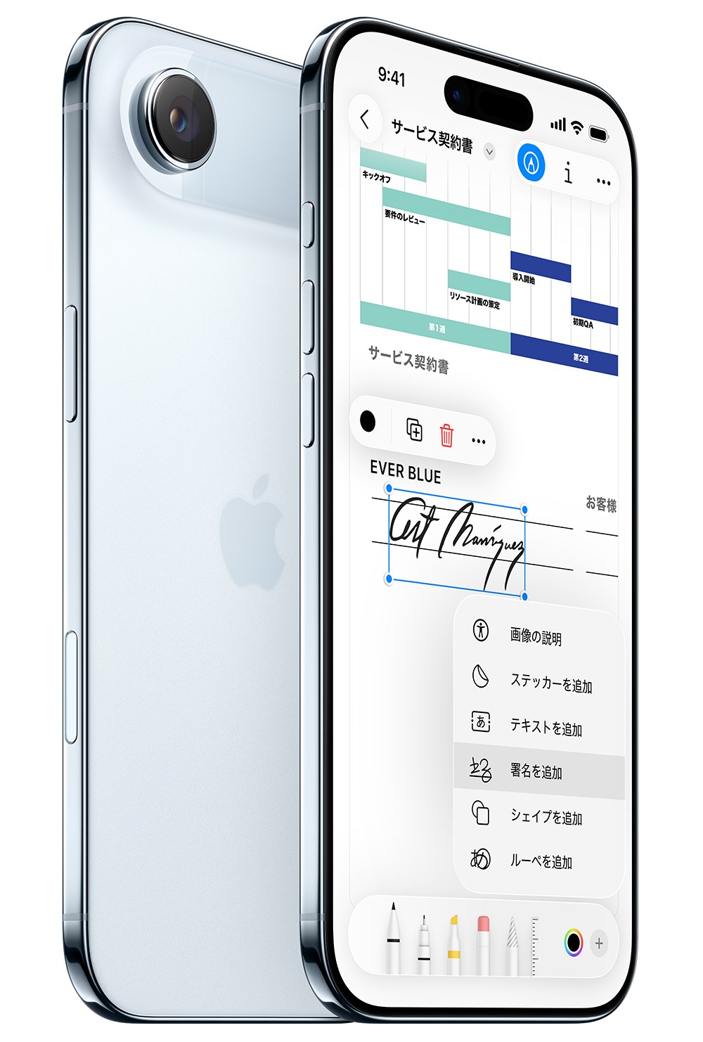 Apple Intelligenceが、生産性を高めるスマートなツールであなたをサポート6。作文ツールを使って長文メールをすばやく要約したり、校正したり、書き直したり。画面に表示されているものをビジュアルインテリジェンスで調べたり7、ライブ翻訳で様々な言語のコミュニケーションを行ったりできます8。 |