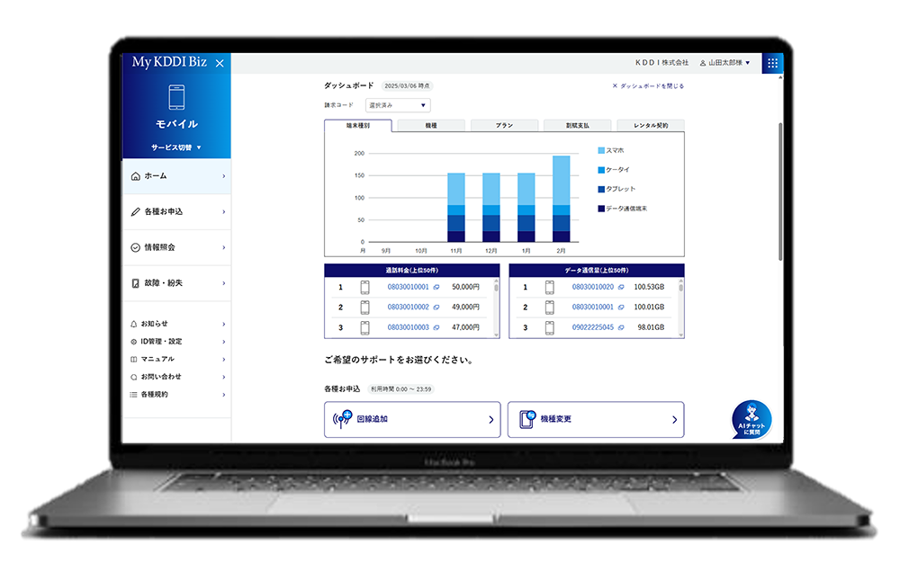引き続き「My KDDI Biz」ブランドで機能拡充を図ってまいりますので、今後ともご利用ご活用のほど、よろしくお願いいたします。