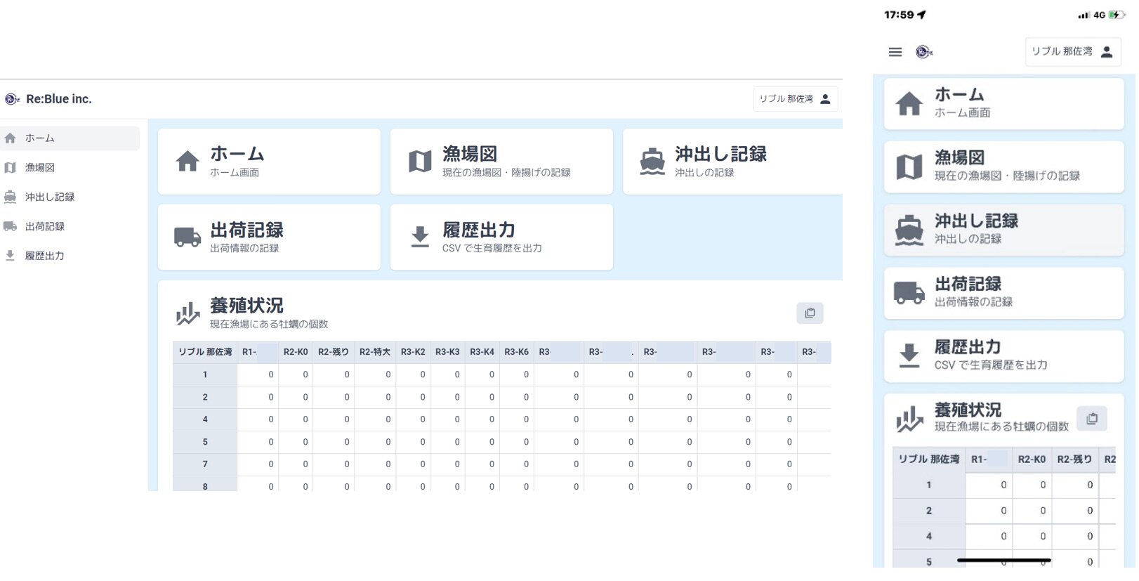 牡蠣生育状態から出荷までを管理するシングルシード生産方式専用のアプリです。牡蠣養殖に必要な情報をアプリ上で一覧化することで、負担となっていた管理業務を低減しました。作業中もスマートフォンから入力が可能でリアルタイムでの情報アップデートや、業務の効率化を実現しました。