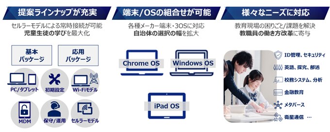 本パッケージの提供を通じて、教育現場のICT環境の整備や教職員の働き方改革、児童生徒の学習の個別最適化を支援します。