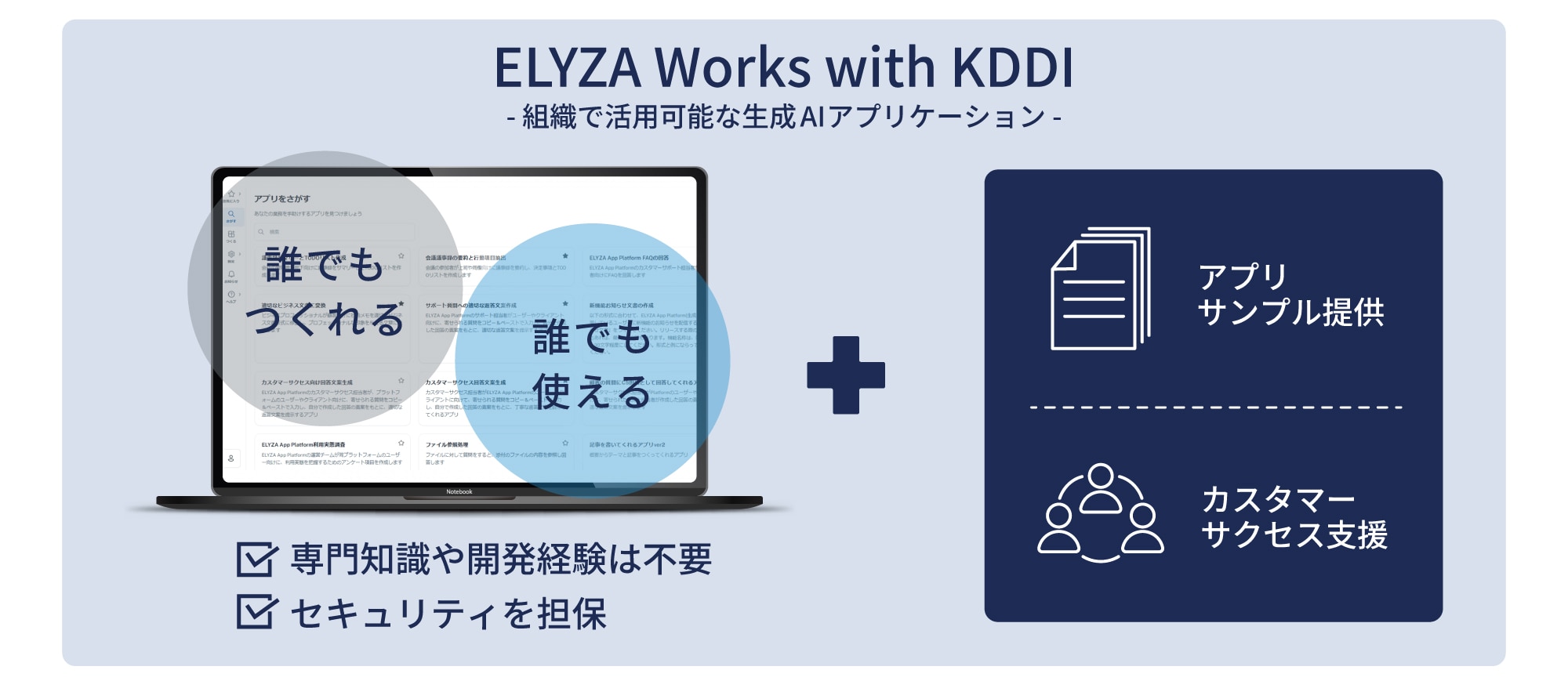 KDDIは2025年9月17日から、専門知識不要でAIアプリを簡単に開発可能な生成AIサービス「ELYZA Works with KDDI」(以下 本サービス) を提供開始します。